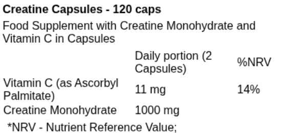 Creatine Monohydrate, Vegetable cellulose (capsule), stearic acid, silica.
